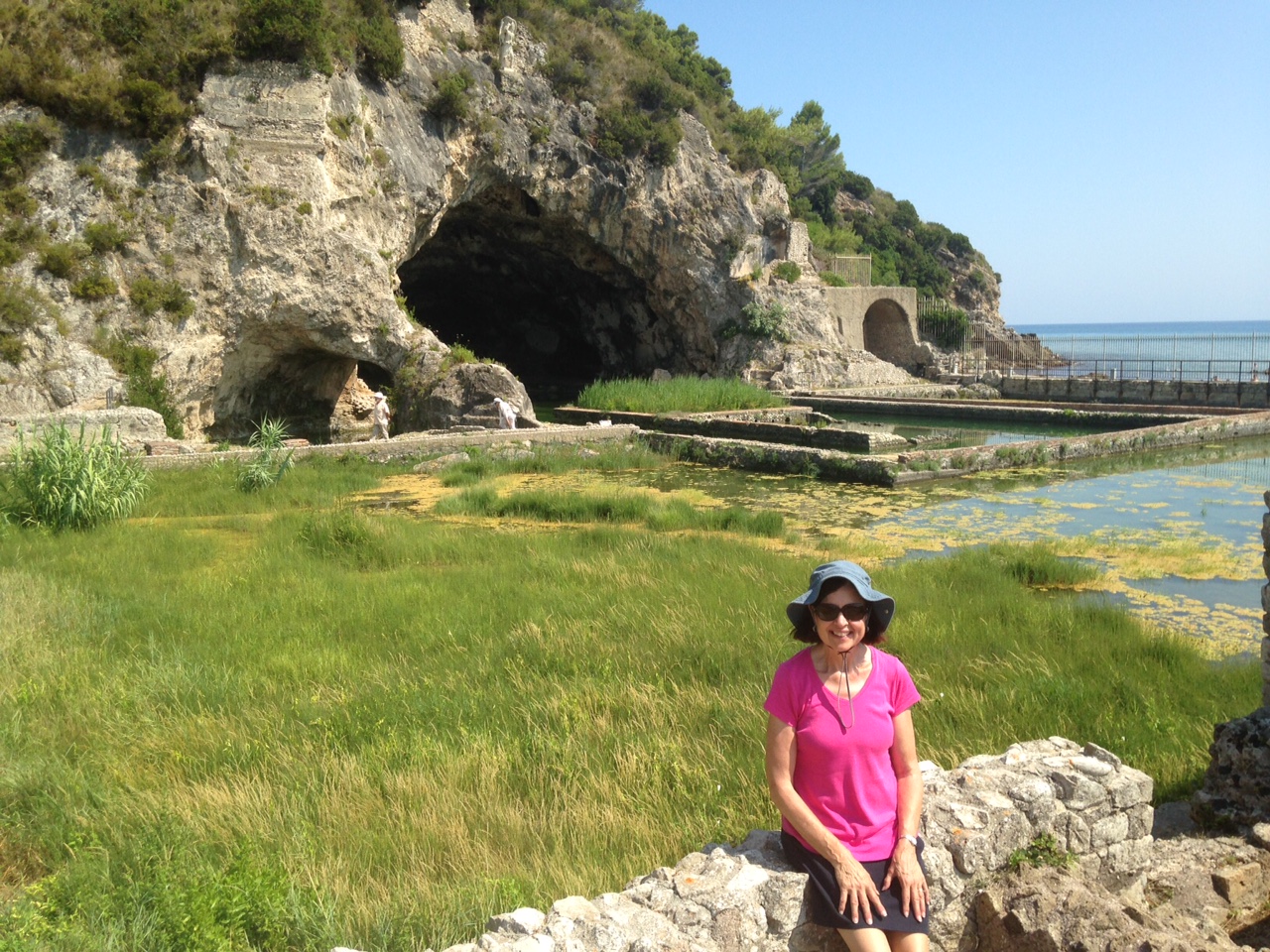 I will remember gazing out from a villa rooftop toward the beautiful island of Ischia, hearing beautiful Italian music from a nearby venue, taking in beautiful fuchsia flowers in the courtyard, enjoying meals with friendly Anna and Simone serving us pasta, freshly picked garden vegetables, savory meats, or delicious desserts.   I will recall our hostess Nina greeting everyone: undergraduates, graduate students, and Latin teachers who gathered for conversation, informative workshops and engaging talks on-site by world-class scholars.   We made new friends and experienced a once-in-a-lifetime opportunity.  These memories will remain whenever I think of my time at the Villa Vergiliana in Cumae, Italy, from June 26 to July 23, 2016. Both tours included 4 days in Rome: truly a Latin teacher’s dream come true!