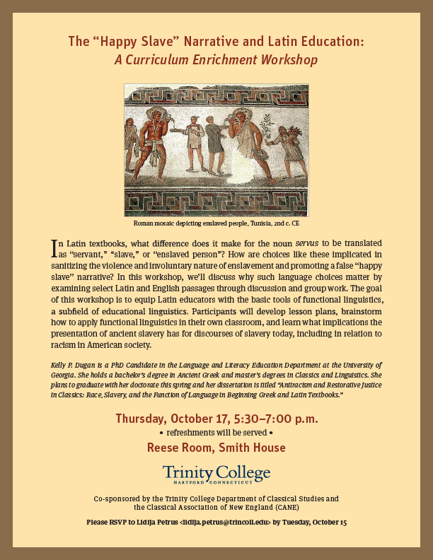 The “Happy Slave” Narrative and Latin Education: A Curriculum Enrichment WorkshopThis entry was posted in CANE News on September 23, 2019 by Ben Revkin