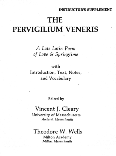 Pervigilium Veneris – Teacher’s Notes